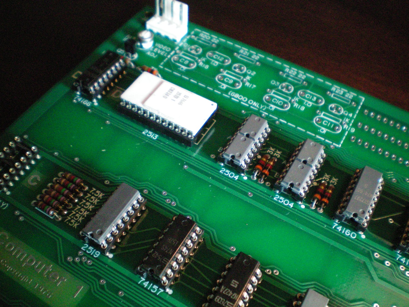 Upon close inspection I noticed a few unusual things about this Apple 1. First, an unusual white 2513 is used. I have not seen another Apple 1 with this type of package. After researching the chip I determined that it was a Signetics 2513I, which I found from a surplus vendor.